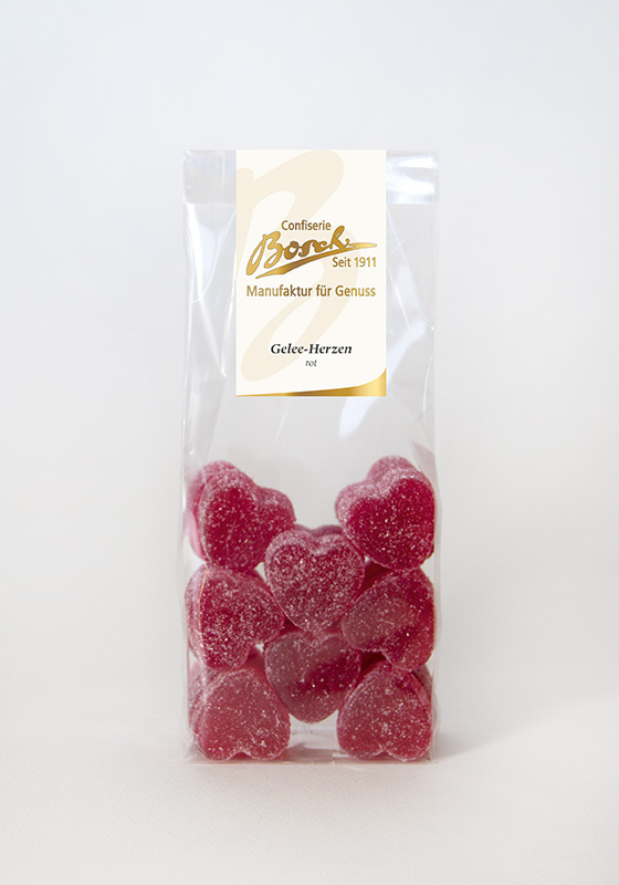 Klares Gelee in roter Färbung, mit Zucker bestreut