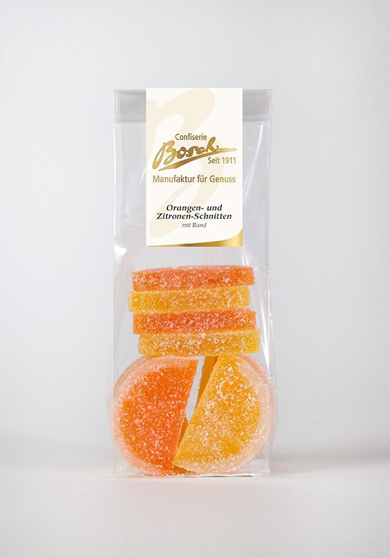 Gelee-Schnitten Orange und Zitrone mit Rand
