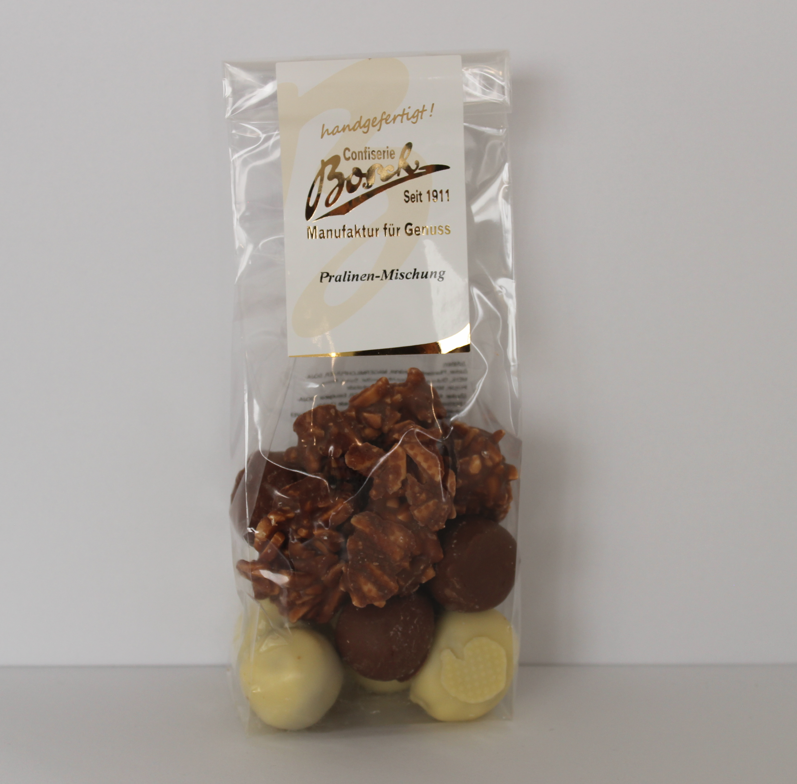 Verschiedene Pralinen in weißer und Vollmilch Schokolade