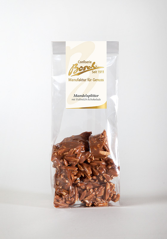 Mandelsplitter mit Vollmilchschokolade überzogen