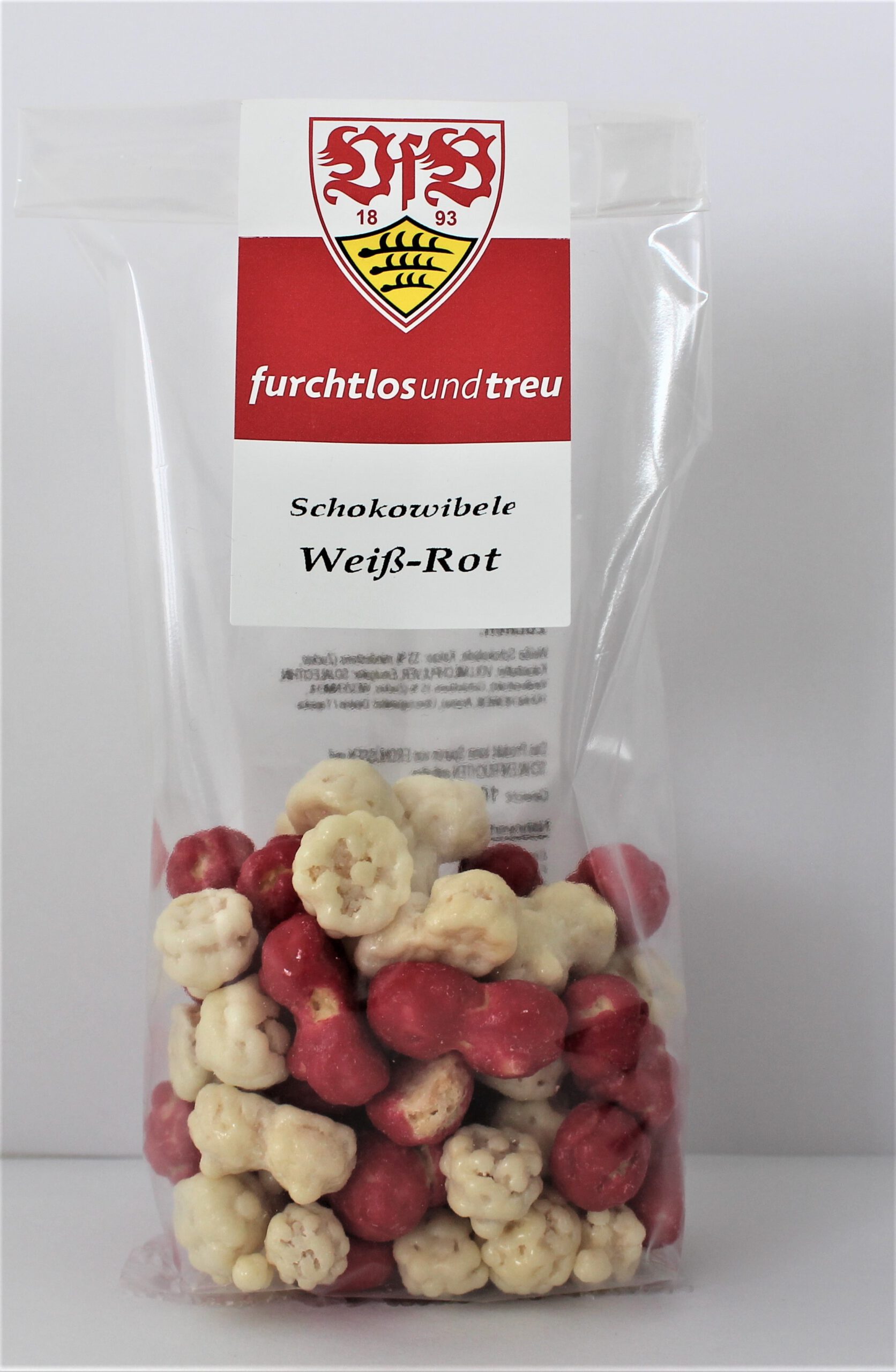 Weiße Schokolade (Zucker, Kakaobutter, Milchpulver, Emulgator (E322 Sonnenblumenlecithine), natürliches Vanillearoma), Gebäckkern 15 % (Zucker, Weizenmehl, Hühnereieiweiß, Aroma), Überzugsmittel: Dextrin / Tapiokadextrin, Maltodextrin, Süßungsmittel: Isomalt, Trockenglukosesirup, Schellack; Lebensmittelfarbstoffe: Echtes Karmin, Beta-Carotin.