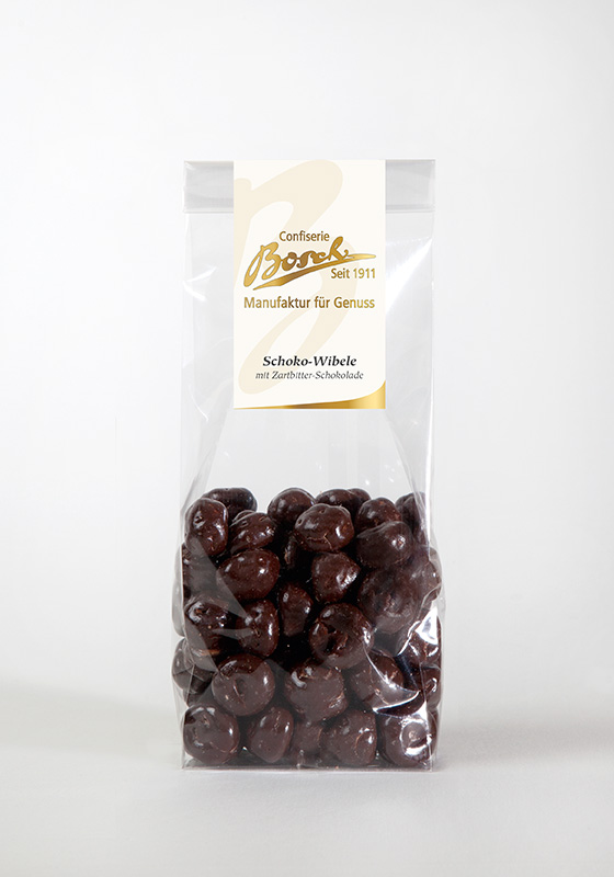 Dunkelbraune, ungleichmäßig von kugelförmig über leicht zylindrisch geformte Dragees mit gekrauster Oberfläche, Drageekern aus hart-spröder Gebäckmasse mit Zartbitterschokolade überzogen